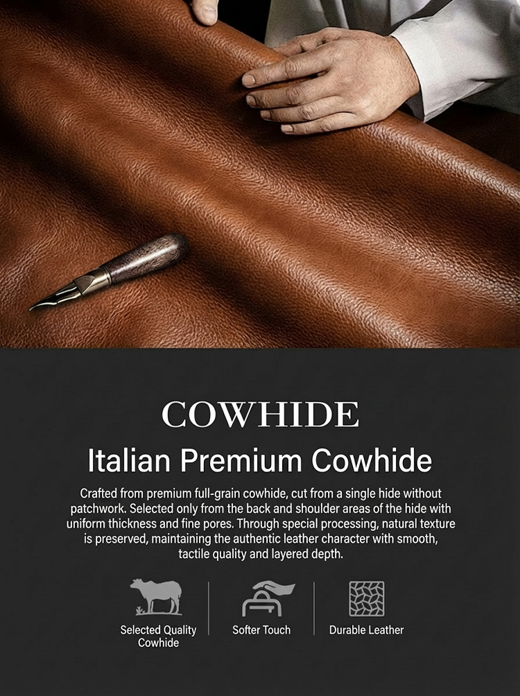 Crafted jointly by a top French design team with 180 years of heritage 🎨, it's made of premium Italian full-grain leather—soft in texture yet durable for long-term use 🐂. Equipped with a built-in RFID blocking layer to protect your bank cards from electronic theft 🔒.